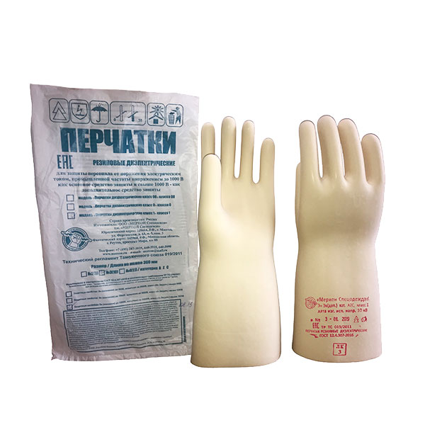 При работе с электрооборудованием допускается использование перчаток, выполненных из диэлектрической резины или латекса. При этом сами изделия могут быть как со швом (шовные), так и без шва (бесшовные), как двупалые, так и пятипалые. Минимальная длина перчаток не должна быть меньше 350 миллиметров. При выборе размера диэлектрических перчаток важно учитывать, при каких температурных условиях их придётся использовать. При отрицательной температуре окружающей среды, ширина перчаток должна быть больше, чтобы сотрудник мог надеть под защитную одежду утеплённый трикотаж.