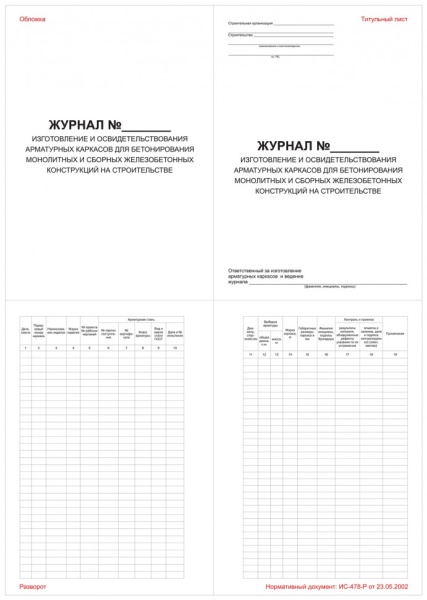 Журнал изготовления и освидетельствования арматурных каркасов