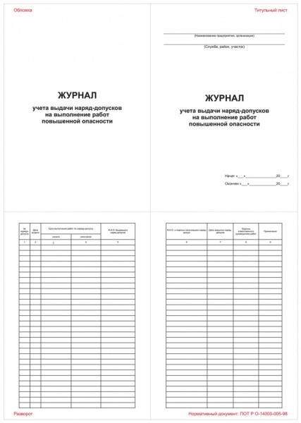 Журнал учета выдачи наряд-допусков на выполнение работ повышенной опасности