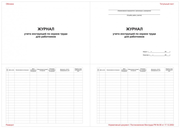 Журнал учета инструкций по охране труда для работников