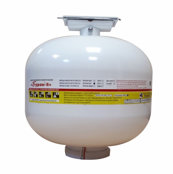 Наименование Значение Тип крепления Потолочное Высота установки, м 2,5…6,5 Защищаемая площадь по классу А/В, м2 до 32/21 Защищаемый объём по классу А/В, м3 до 60/42 Ток запуска, А 0,2…3,5 Длительность пускового импульса, сек. ≥0,1 сек Температурные условия эксплуатации, °С -50…+50 Гарантийный срок эксплуатации МПП, год 2 Срок службы МПП, год 10 Габаритные размеры (диаметр × высота), мм 250×262 Масса МПП (в том числе заряд ОТВ), кг 12 (7) Размеры в упаковке, мм 425×270×270 Объём в упаковке, м³ 0,03 Масса брутто, кг 13,5
