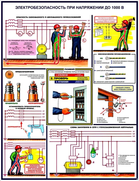 -Плакаты Электробезопасность при напряжении до 1000 В