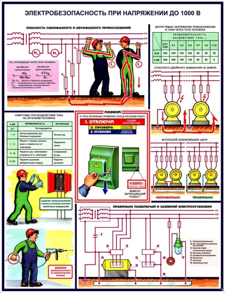 Плакаты Электробезопасность при напряжении до 1000 В
