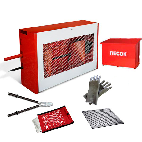 1 шт. 3 Багор с деревянной рукояткой 1 шт. 4 Противопожарное полотно (кошма) 1 шт. 5 Лопата совковая 1 шт. 6 Лопата штыковая 1 шт. 7 Ножницы диэлектрические 1 шт. 8 Перчатки диэлектрические 1 пара