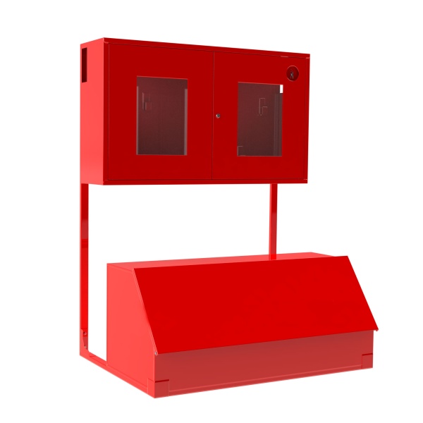 Пожарный стенд закрытый универсальный с окнами и ящиком для песка 0.3 куба