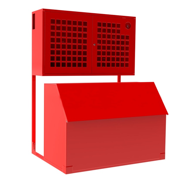 Пожарный стенд закрытый универсальный с сеткой и ящиком для песка 0.5 куба