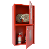 ПОЖАРНЫЙ ШКАФ ШПК-320-12 НОКСостоит из двух вертикально ориентированных секций и служит местом хранения таких первичных средств пожаротушения, как огнетушители и комплекты пожарного крана (ПК). Изделие выполнено из листовой стали методом сварки и покрашено особой порошковой краской красного цвета. Для подведения противопожарного водопровода и монтажа на него пожарного крана (ПК) боковые стенки шкафа имеют перфорированные отверстия.