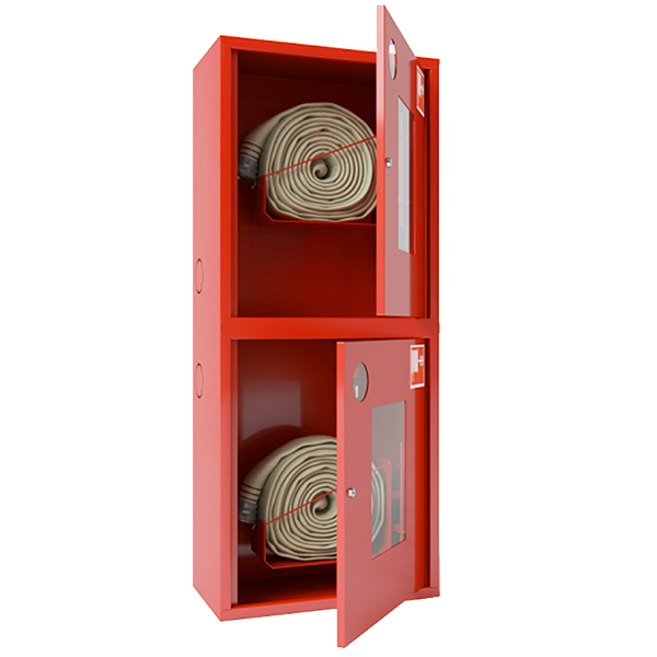 ПОЖАРНЫЙ ШКАФ ШПК-320-21 НОКПредназначен для размещения двух комплектов пожарного крана (ПК), каждый из которых состоит из поворотной рукавной кассеты, пожарного рукава, ствола, клапана (вентиля) и соединительных головок. Модель имеет две секции вертикального позиционирования, по одному комплекту ПК в каждой. Изделие выполнено из тонколистовой стали и окрашено в красный цвет.