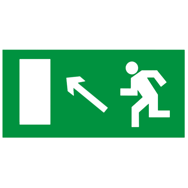 Знак E06 Направление к эвакуационному выходу налево вверх